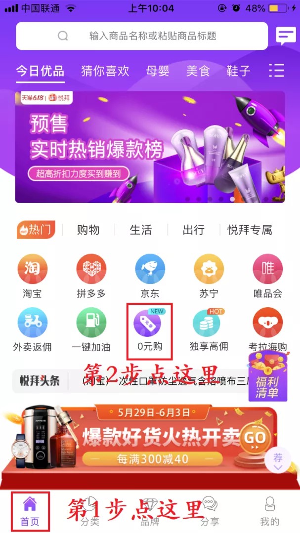 第二步 打开APP进入0元购,不懂的参照下图: