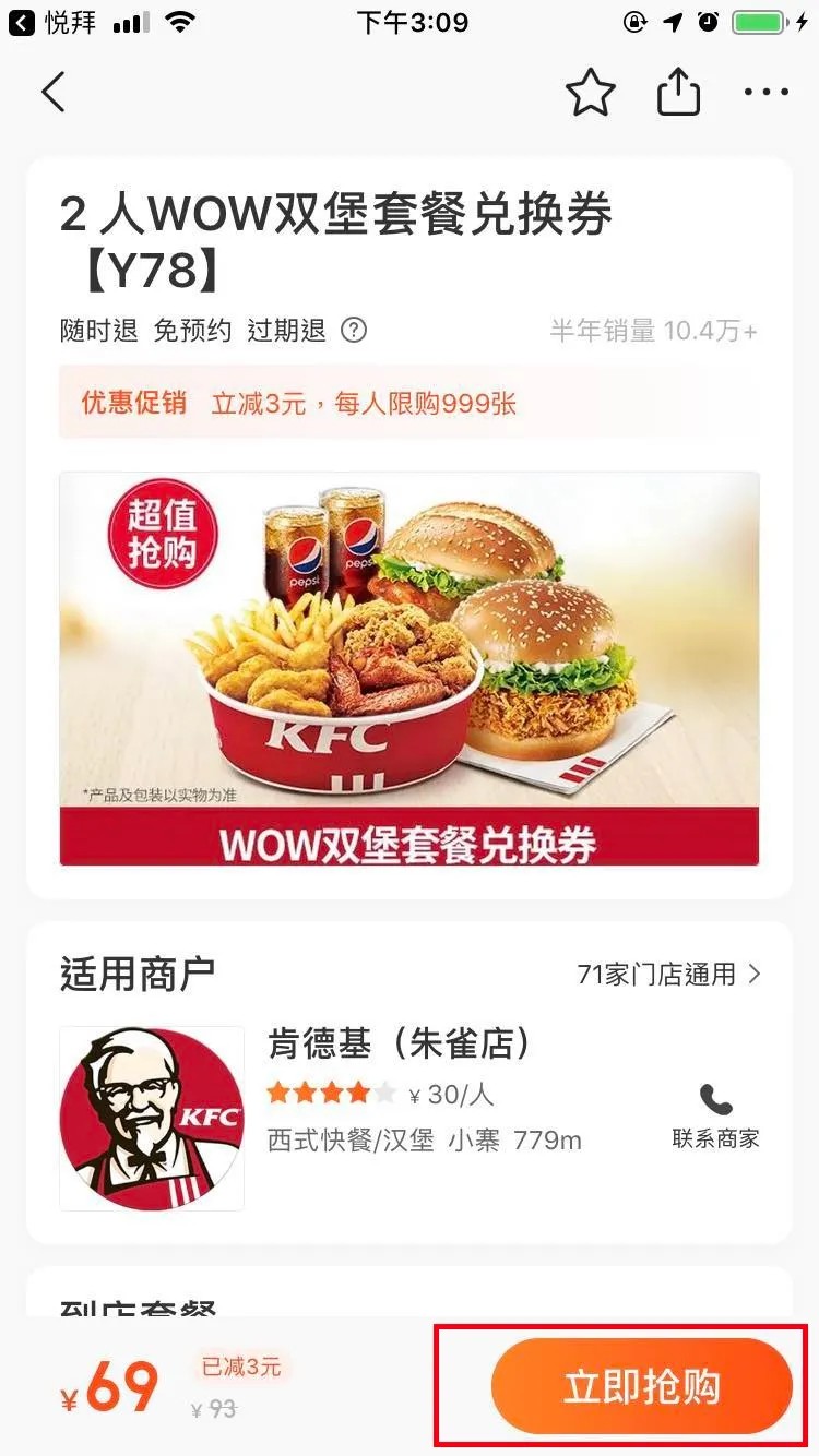 第四步 在美团APP里找到这家店你要团购的东西点击立即抢购。如下图