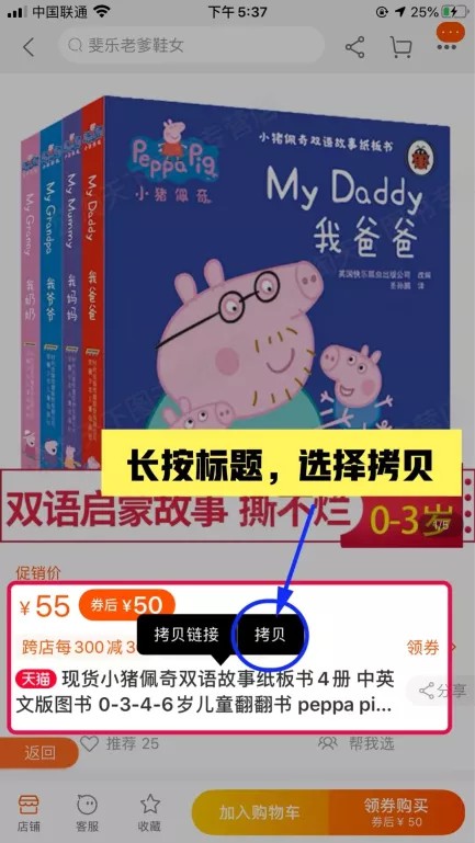 1、长按标题,拷贝