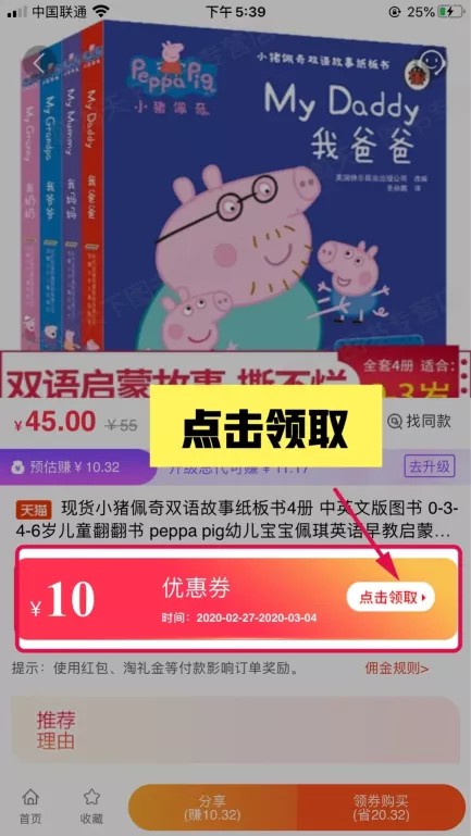 4、若是自购,可直接点击领取,会自动跳转淘宝优惠卷领取处。