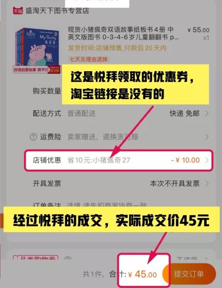 经过悦拜以后的实际成交价格为45元